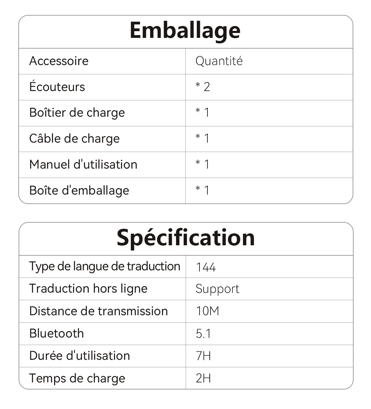 - Traduction en temps réel - Prend en charge 144 langues pour une communication fluide.